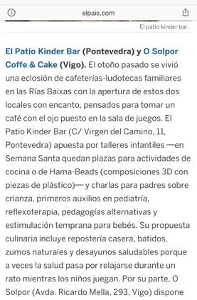 En una ciudad como Pontevedra, en la que los niños son los protagonistas, no podía faltar un bar pensado para ellos. Pero tal vez la palabra "bar" se quede algo corta a la hora de definir el espíritu con el que nace El Patio Kinder Bar; El Patio se define como un espacio de ocio familiar