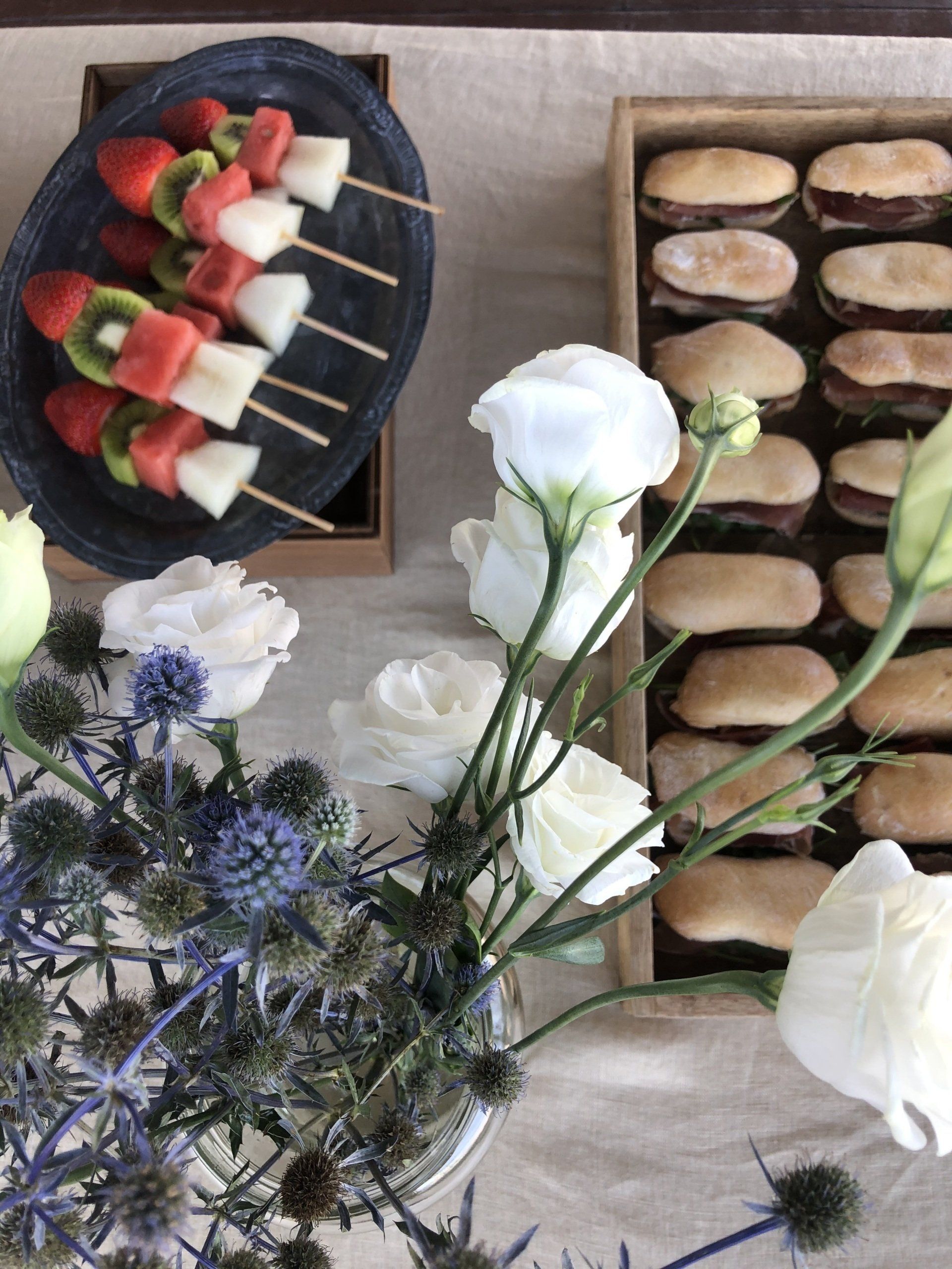 Variado minibocadillos, variado snacks, galletitas, chocolatinas, petit bebible, brochetas fruta de temporada, golosinas