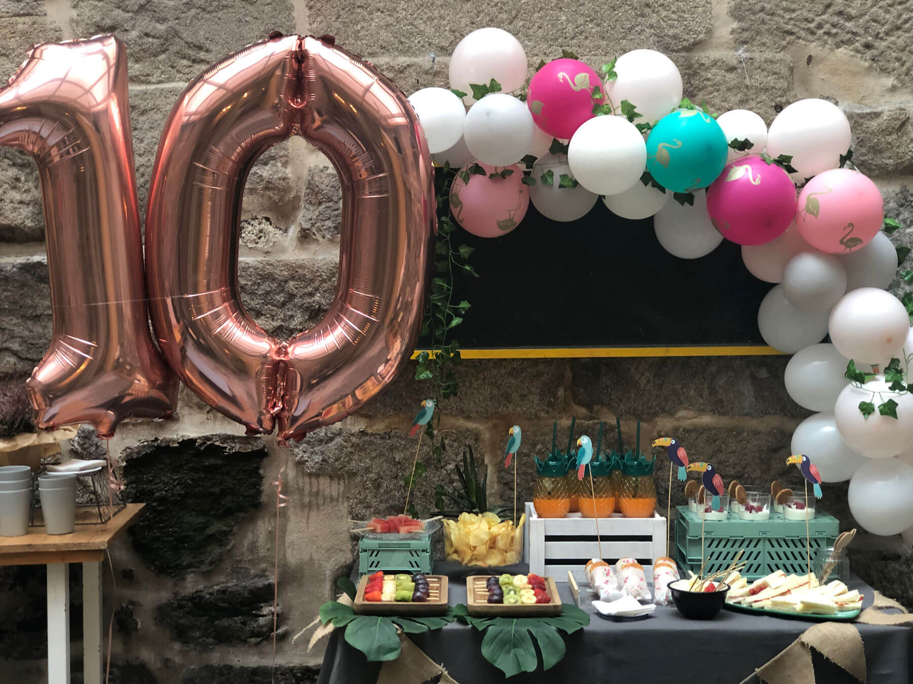 El último grito en cumpleaños para este verano son las fiestas con temática tropical. Tucanes, flamencos, piñas, fruta fresca... el ambiente caribeño de El Patio Kinder Bar y el buen tiempo invitan a disfrutar! Como los cumples eran de mañana, el menú estaba compuesto por mini hamburguesas, quiches, embutidos ibéricos, tortillas, bandejas de crudites, brochetas de fruta, piruletas de sandía, yogurt con frutos rojos.... C on esta variedad, tanto peques como adultos salieron ya comidos! Uno de los eventos contó, también, con animadora para entretener a los niños mientras los mayores charlaban y disfrutaban del menú en otra zona; en el otro organizamos un taller de abalorios y una sesión de música karaoke y baile. Si un cumpleaños, además de rico y bonito, es divertido, seguro que es un cumpleaños como los de El Patio Kinder Bar!